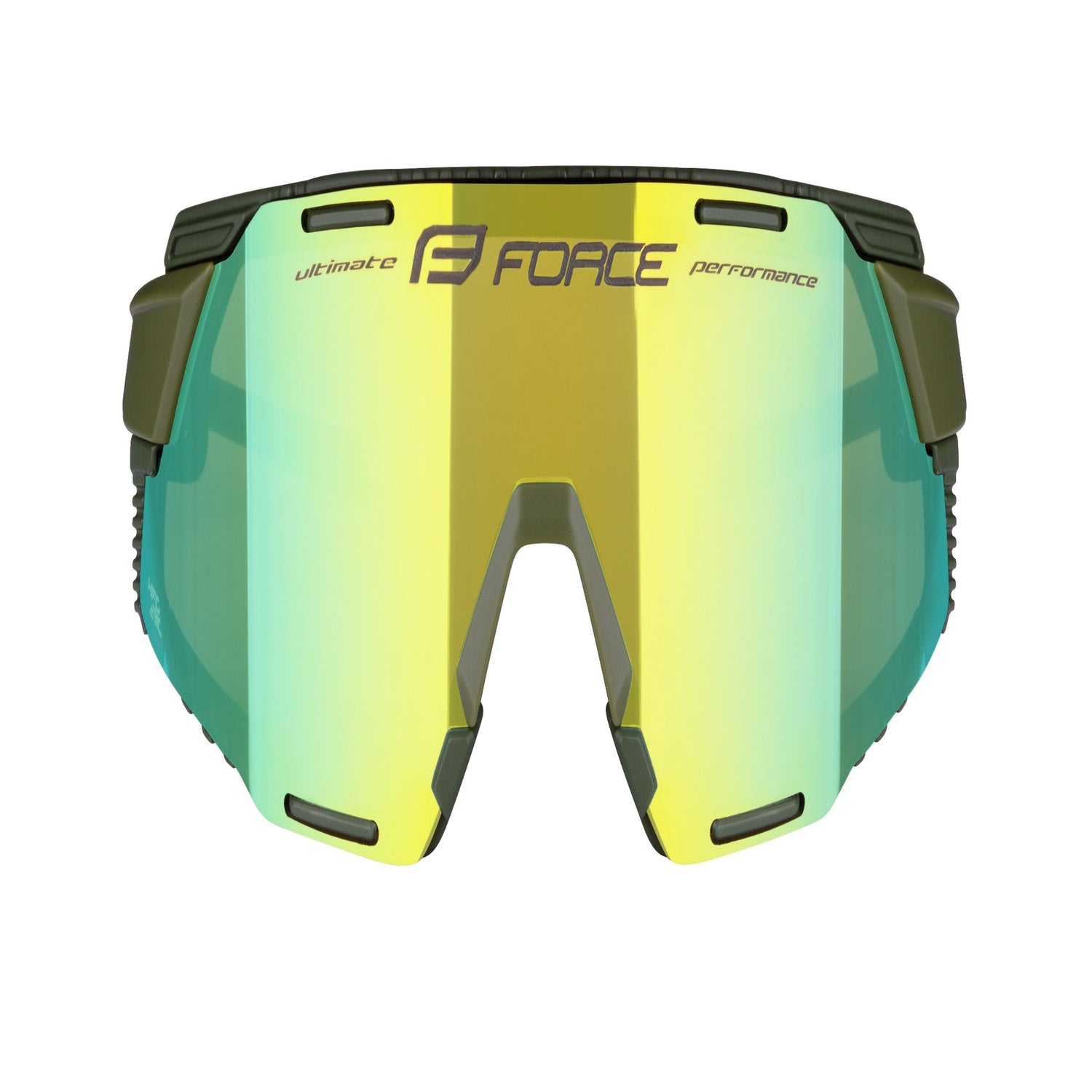 Introducing the FORCE sunglasses GRIP in a striking army-gold frame with gold Revo lenses, designed for durability and superior performance. The frame is crafted from an enhanced grilamid material (TR90), offering exceptional strength and flexibility to withstand everyday wear and active lifestyles. Equipped with high-quality polycarbonate lenses featuring UV 400 protection, these sunglasses effectively block harmful ultraviolet rays, ensuring your eyes stay safe under intense sunlight. The lenses boast a filter category 3 rating with 13% light transmittance, providing optimal glare reduction and clear vision in bright conditions. The inserted gold Revo lens enhances contrast and reduces eye strain, delivering both style and functionality. An advanced H2FOBIC hydrophobic coating repels water and dirt, keeping your lenses cleaner for longer and minimizing smudges. Additionally, an anti-scratch treatment helps protect against daily abrasions, maintaining the pristine look of your sunglasses. Each package includes an extra fluorescent-colored frame for versatility, three self-adhesive sweat-foams to ensure comfort during physical activities, and a soft microfiber pouch for gentle cleaning. All items are securely housed in a robust EVA case. Weighing only 39 grams, these lightweight sunglasses combine comfort, resilience, and cutting-edge features for the ultimate eyewear experience.