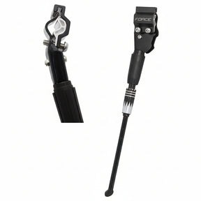 The FORCE Kickstand BAL 24-29 is a versatile rear-mounted kickstand designed for bicycles with square frame forks. It is adjustable to fit a wide range of wheel sizes, accommodating bikes with wheels from 24 inches up to 29 inches. This kickstand features a reduction adapter, allowing it to be securely mounted on round frame tubes as well, enhancing its compatibility across different bike frame designs. Constructed from durable alloy, this kickstand offers a lightweight yet sturdy solution for bike support, weighing only 240 grams. It provides an adjustable length, with a maximum extension of 36 cm and a minimum length of 32.5 cm, enabling a tailored fit based on your bicycle's geometry. Notably, it comes without a plastic end cap, which may suit users looking for a more minimalist or maintenance-friendly option. The kickstand is supplied neatly packed on a FORCE-branded card, ensuring it is ready for easy installation right out of the package. With its robust build and flexible mounting options, the FORCE Kickstand BAL 24-29 is an excellent choice for riders seeking reliable rear support for a variety of wheel sizes and frame types.