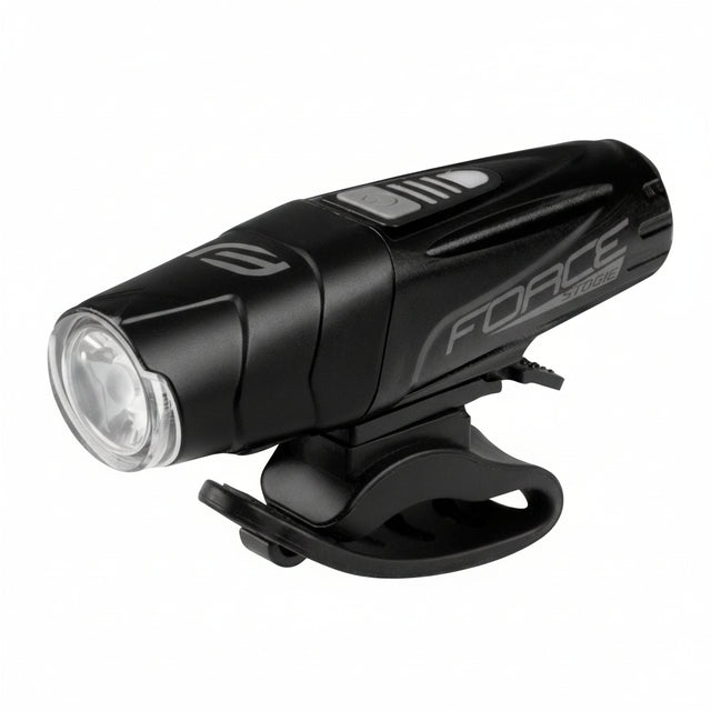 The FORCE Stogie front light delivers powerful illumination with a 10W OSRAM P9 LED, producing a bright 900 lumens output. Designed with versatility in mind, it offers six different modes: three steady lighting options and three flashing patterns to enhance visibility and safety in various conditions. The light is equipped with a universal elastic silicone mount, fitting handlebars ranging from 22.2mm to 31.8mm, ensuring easy and secure attachment.