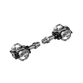 Introducing the FORCE Clip-In FPC Pedals featuring the innovative Pedal Click system, designed to enhance your mountain biking experience. These pedals are fully compatible with SHIMANO SPD cleats SM-SH51 and SM-SH56, ensuring a secure and reliable connection to your cycling shoes. Built for durability and performance, they boast sealed bearings for smooth rotation, a robust Cr-Mo axle, and a lightweight alloy pedal body that balances strength with weight savings.