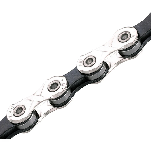 Versatile in application, the KMC X10 chain is suitable for downhill biking, mountain biking, road cycling, and cyclo-cross, making it a go-to choice for cyclists who need consistent quality across different terrains and riding styles. The silver and black finish not only looks sleek but also adds a layer of corrosion resistance to keep the chain looking and performing at its best.